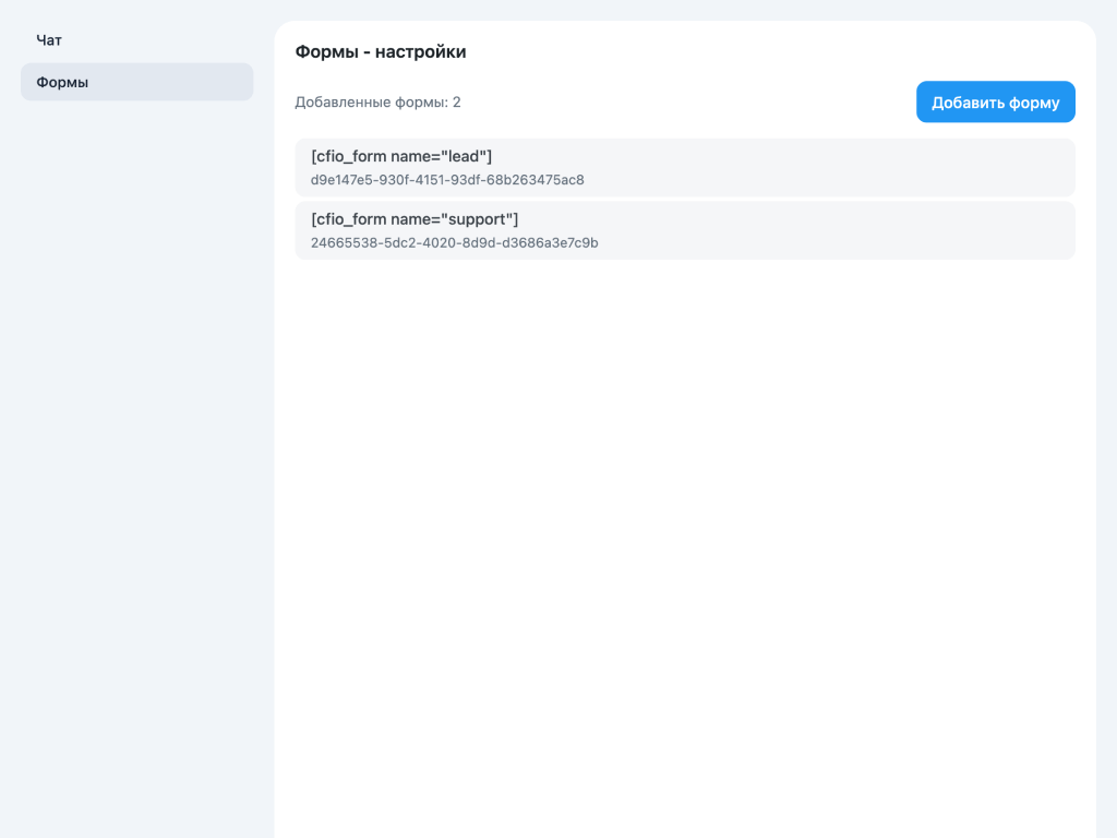 - Интерфейс администратора для управления чат-виджетами и виджетами форм.