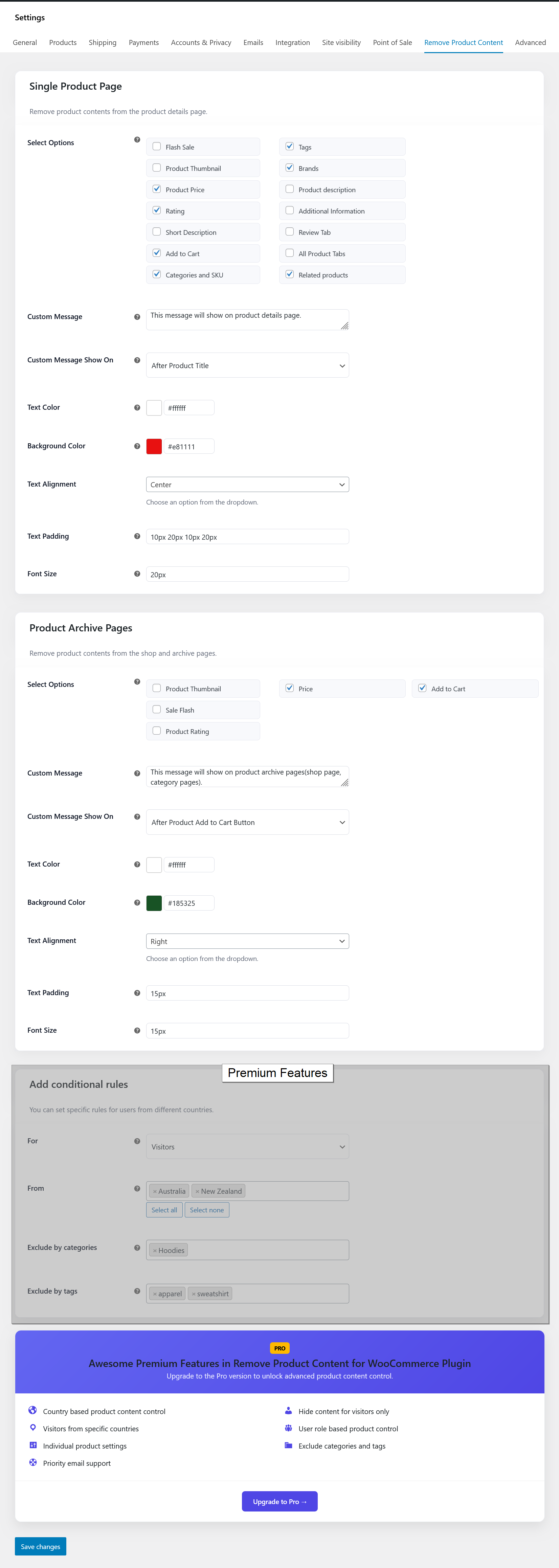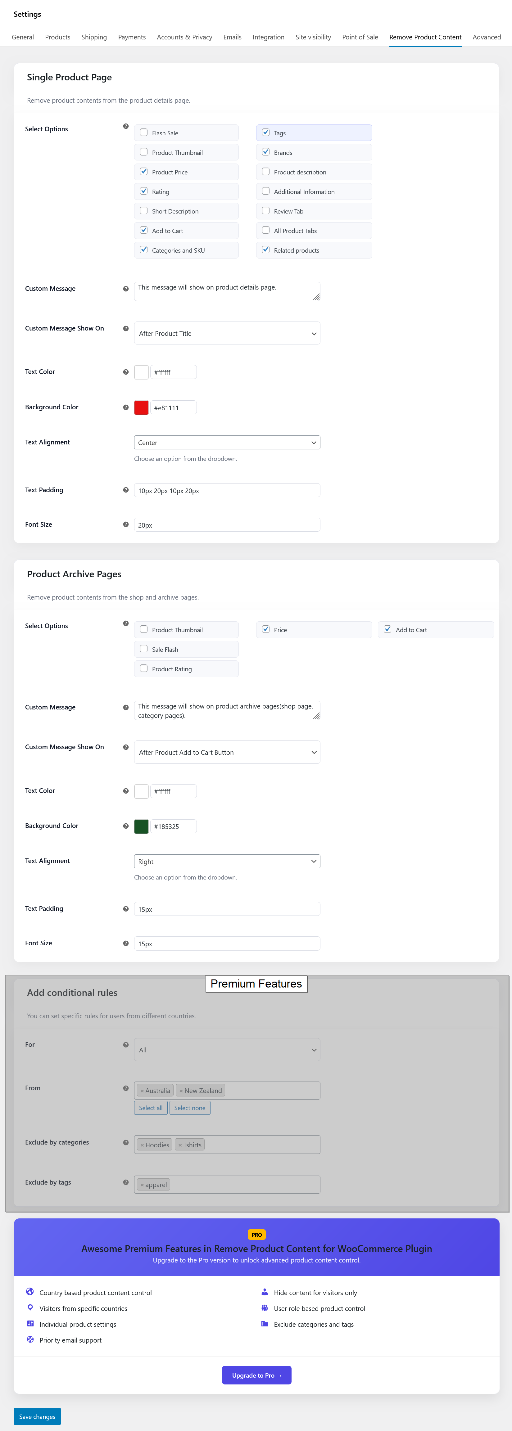 The Remove Product Content for WooCommerce plugin allows store owners to easily customize product pages by removing unwanted sections or elements without altering theme files or using custom code.